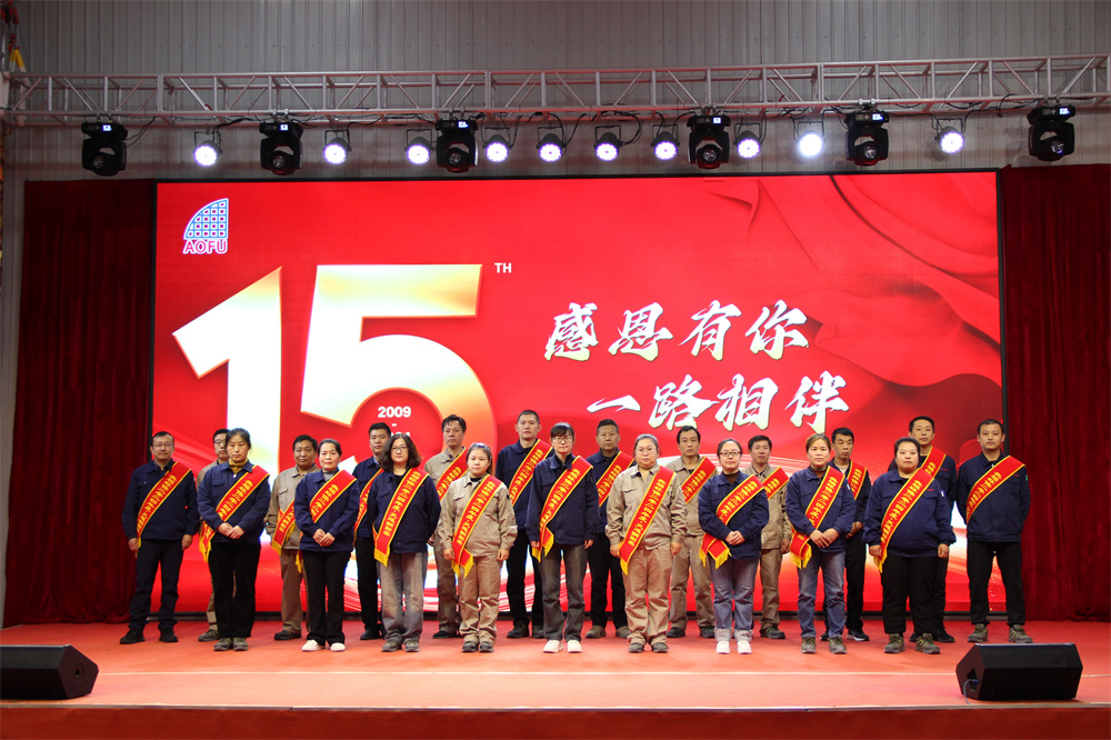活動(dòng)現(xiàn)場(chǎng),公司管理層代表公司給在奧福工作滿十年的員工頒發(fā)“天道酬勤”獎(jiǎng)牌、榮譽(yù)證書及現(xiàn)金紅包。